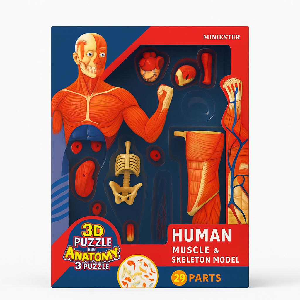 Educational 3D puzzle of the human muscle and skeleton system with detachable parts for learning and display.