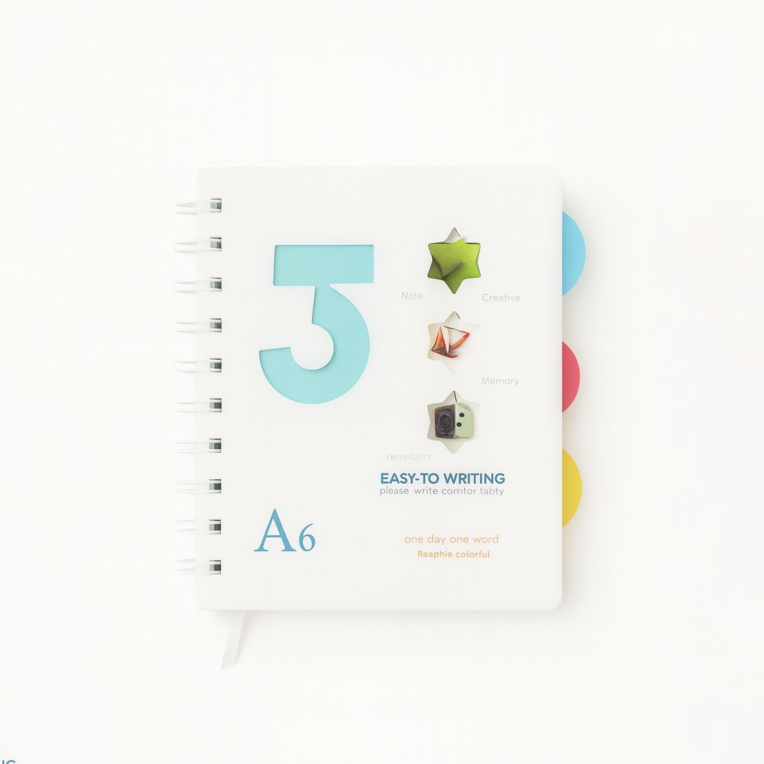 Compact spiral-bound A6 notebook with creative cover design, ideal for easy writing, notes, and everyday use.