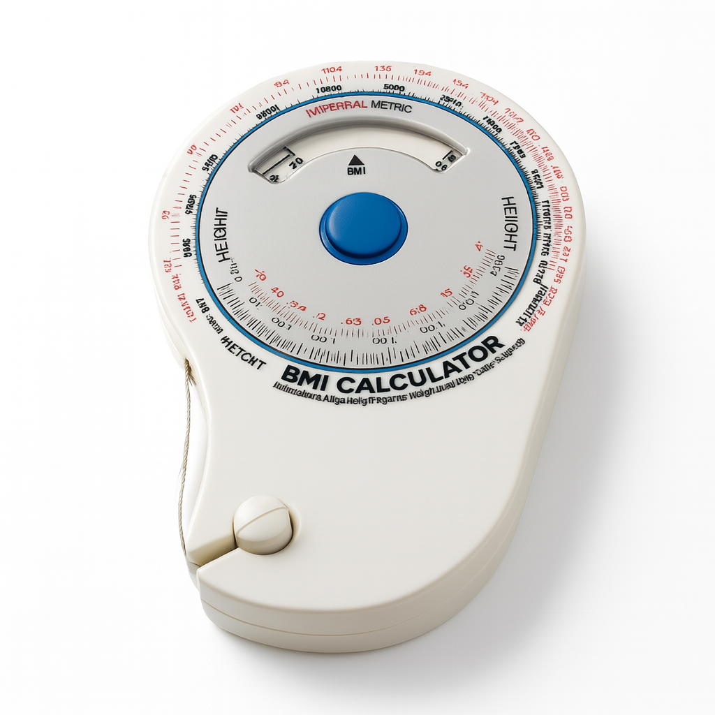 Portable BMI calculator with retractable tape measure—ideal for health, fitness, and wellness promotions.