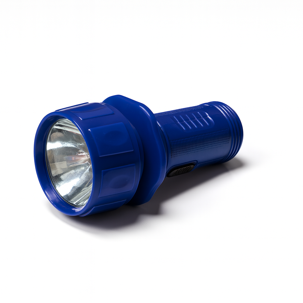 Durable heavy-duty LED flashlight in blue—ideal for home, travel, emergencies, and promotional campaigns.