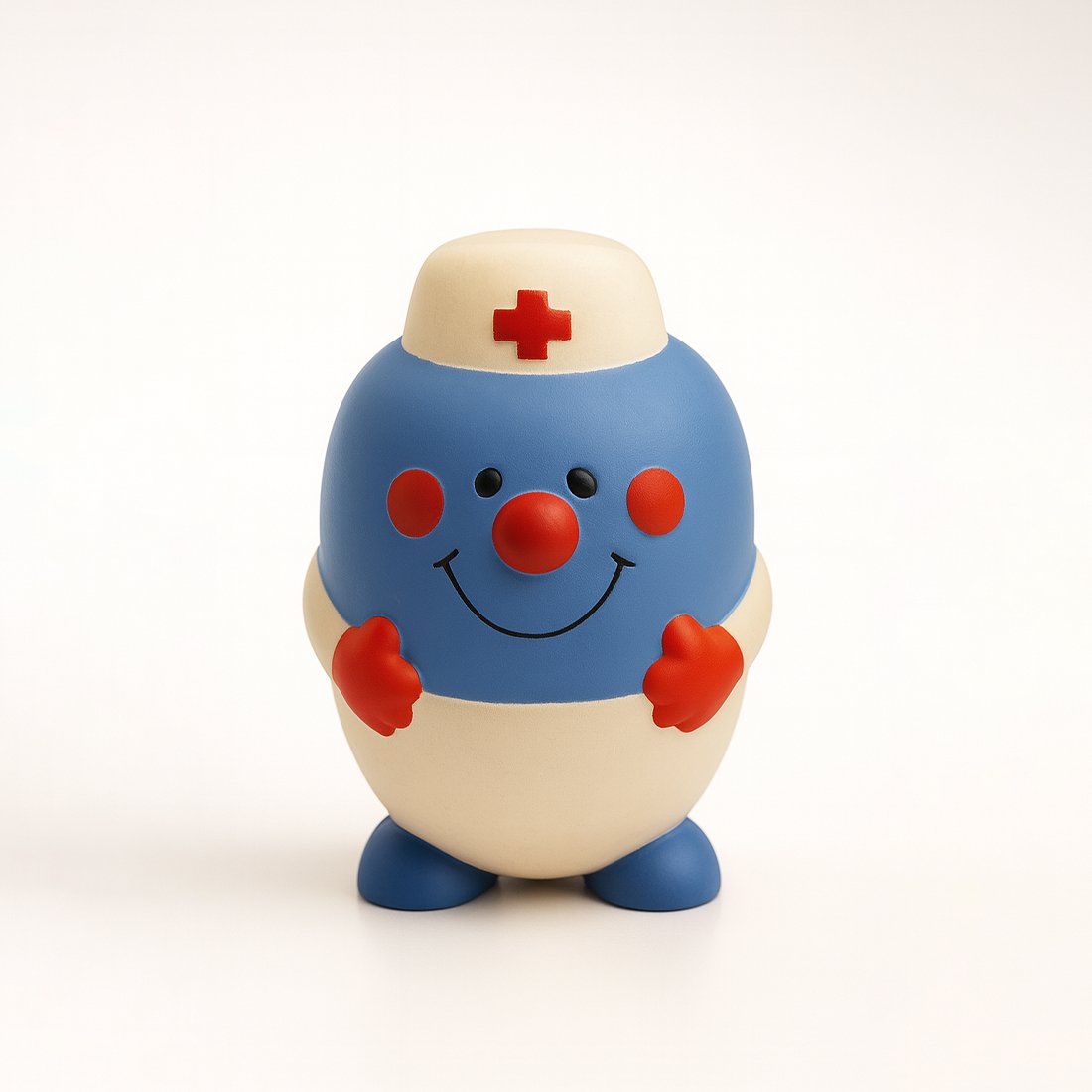 Cute nurse-shaped stress ball, perfect for healthcare promotions, giveaways, and awareness campaigns.