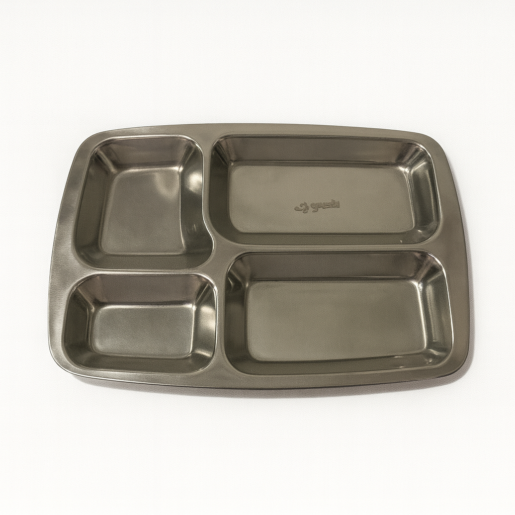 Upgrade dining experience with this stainless steel 4-compartment meal tray, designed for durability, hygiene, and convenience. Each tray is crafted from premium stainless steel, making it rust-resistant, sturdy, and easy to clean.